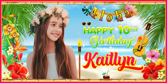 Hawaiian Luau Personalized Birthday Banner With Photo
