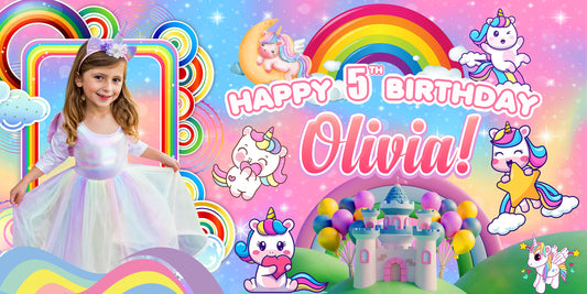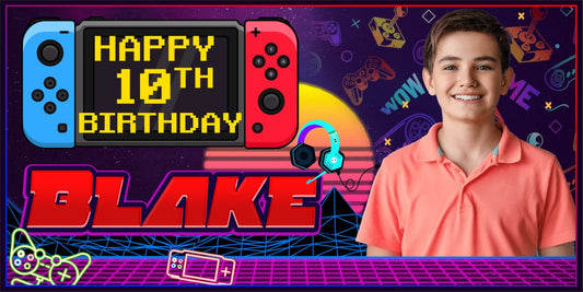 Personalized Birthday Banner - Any Age - Any Name and Photo Free Shipping!