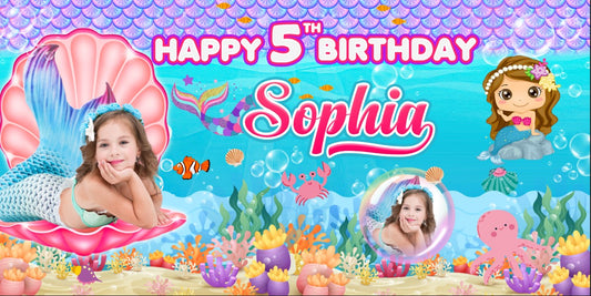 Under The Sea Personalized Birthday Banner - Little Mermaid Inspired - Free Shipping!