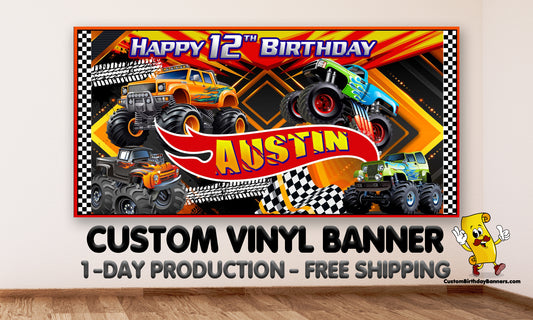 Personalized Birthday Banner - Any Age - Any Name and Photo Free Shipping!