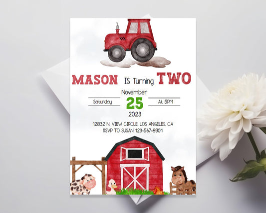 Farm Animal Editable Birthday Invitation