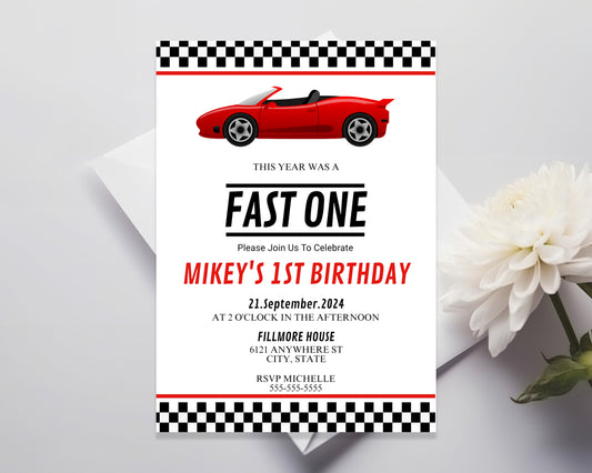 Fast One Editable Birthday Invitation