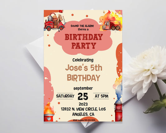 Firefighter Birthday Party Editable Invitation