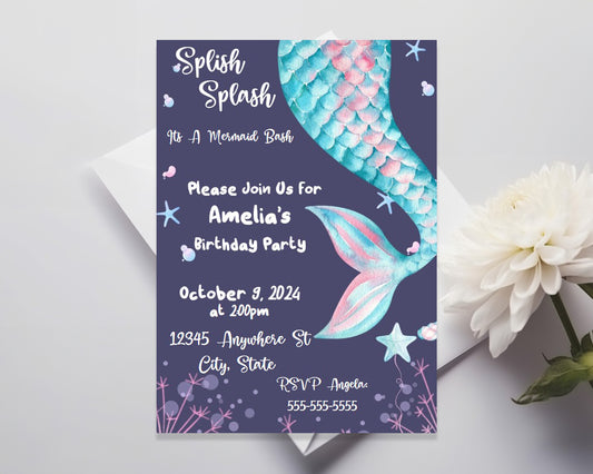 Mermaid Birthday Party Editable Invitation