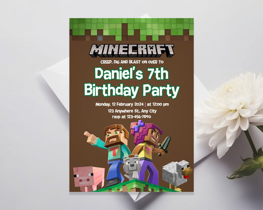 Minecraft Birthday Party Editable Invitation