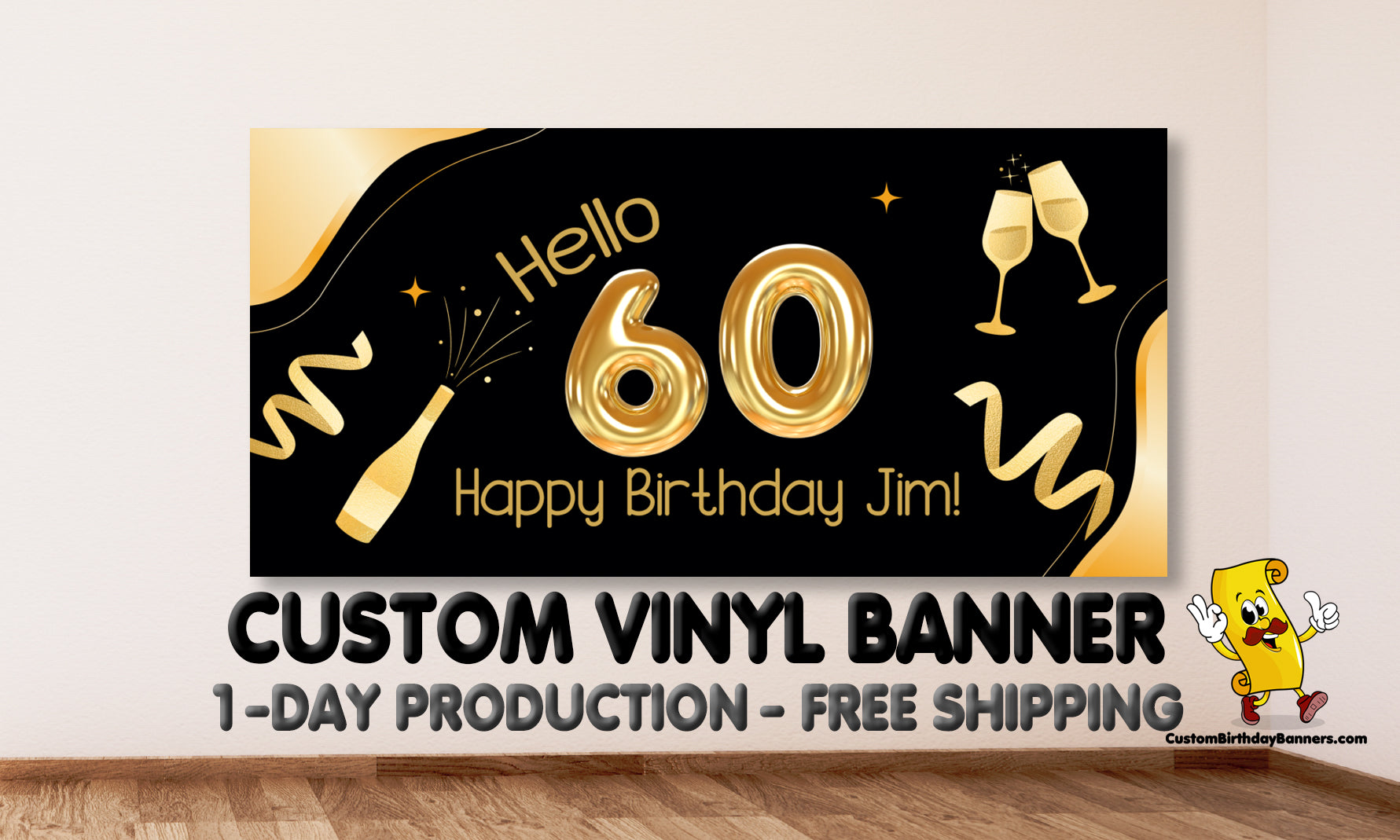 Celebrate with this personalized 60th birthday banner backdrop! Banner can be written on for lasting birthday memories and is sure to be the centerpiece of your birthday celebration.
