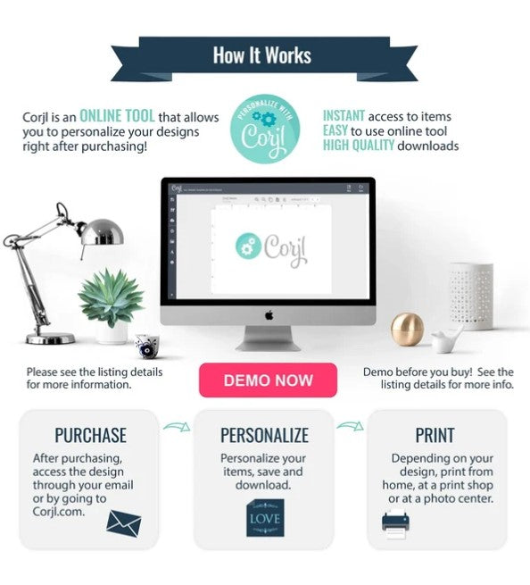 1. After purchasing this listing, you will receive an e-mail from Corjl shortly (typically 1 to 5 minutes after purchase). This email will contain access to the invitation file for editing.