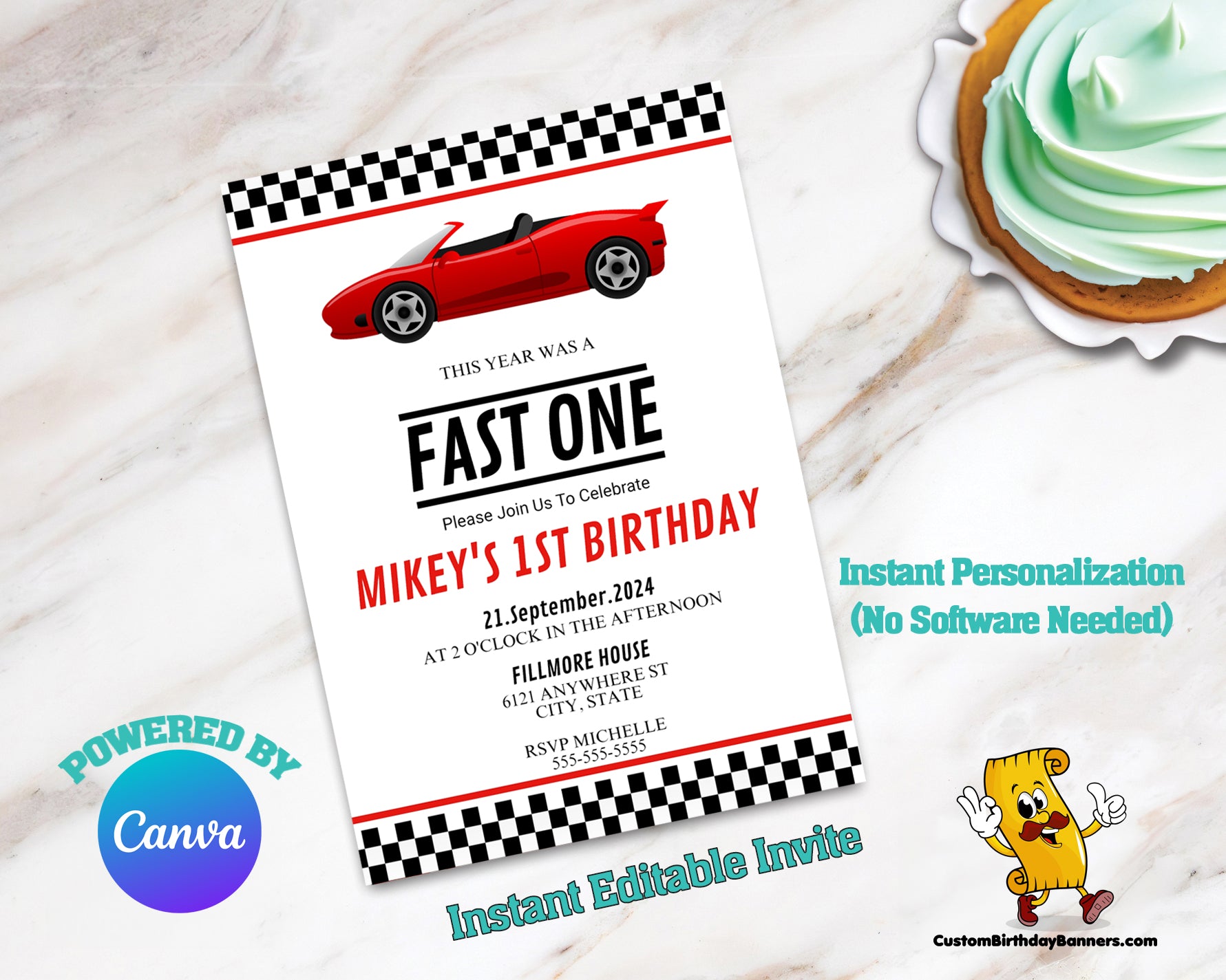 CustomBirthdayBanners.com makes personalizing and printing your own professionally designed invitations fast, simple and fun! This product you are viewing is for an EDITABLE invitation template using Canva. There is no software to download and the invitation can be edited easily on a phone, tablet or in your web browser. After your order is placed, you will immediately receive a link at the order confirmation page to access your editable template. From there, you simply type your text over the pre-designed sample text, save, download and print. You can edit fonts, colors, add text boxes, add images, etc. You can print at home or at any print company you choose. The completed invitation file can also be used for email, text, or sharing to social media platforms like Facebook and Instagram and more!
