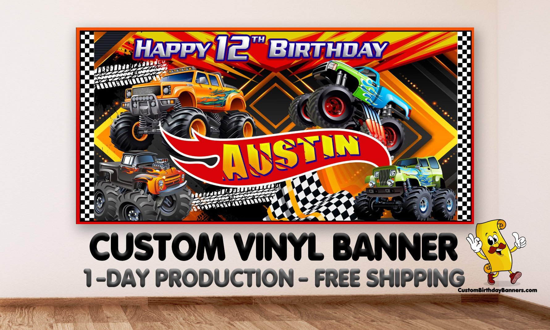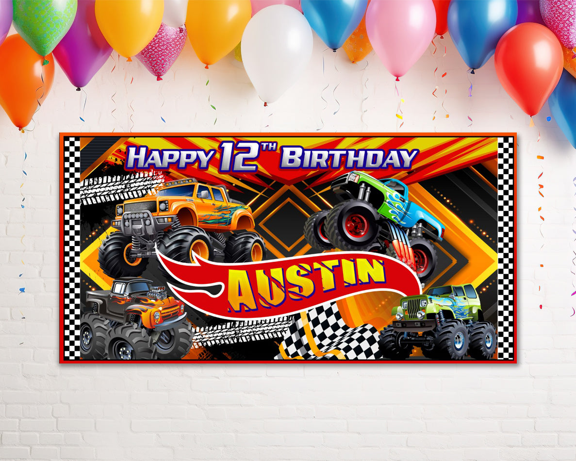 Monster Truck Birthday Personalized Banner
