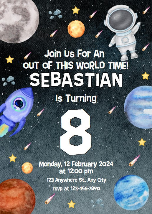Outer Space Birthday Party Editable Invitation