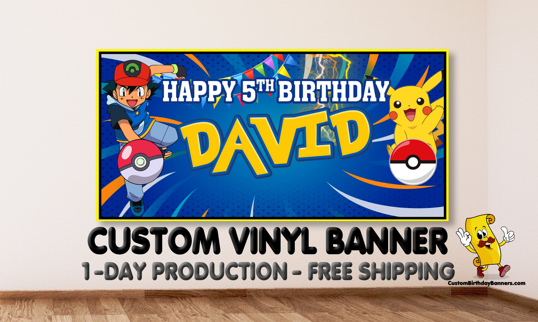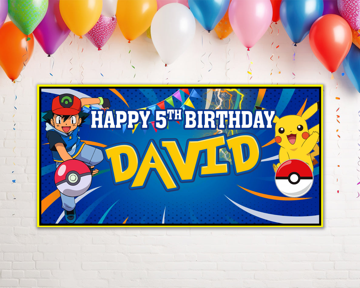 Gotta Catch Em All! Celebrate with this vibrant full color Pokemon Pikachu personalized birthday banner backdrop! Banner can be written on for lasting birthday memories. Offered in a variety of sizes, this banner will surely be the centerpiece of your Pokemon celebration!