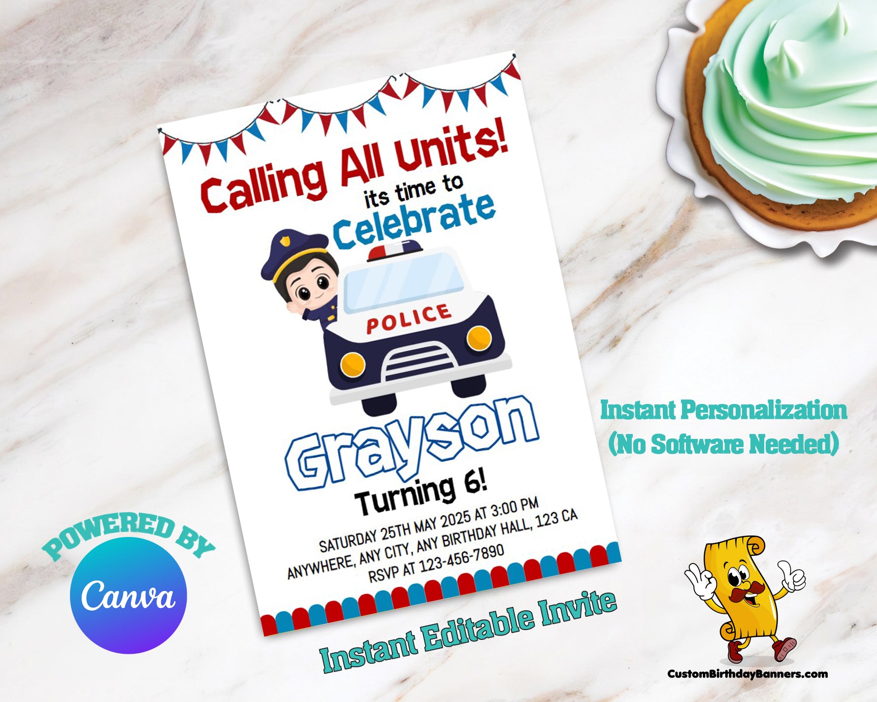 CustomBirthdayBanners.com makes personalizing and printing your own professionally designed invitations fast, simple and fun! This product you are viewing is for an EDITABLE invitation template using Canva. There is no software to download and the invitation can be edited easily on a phone, tablet or in your web browser. After your order is placed, you will immediately receive a link at the order confirmation page to access your editable template. From there, you simply type your text over the pre-designed sample text, save, download and print. You can edit fonts, colors, add text boxes, add images, etc. You can print at home or at any print company you choose. The completed invitation file can also be used for email, text, or sharing to social media platforms like Facebook and Instagram and more!